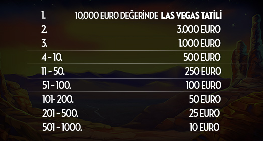 1. oyuncumuza herşey dahil iki kişilik süper lüks Las Vegas tatili hediye ediyoruz.