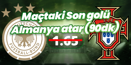 Maçtaki Son golü Almanya atar (90dk)04 Haziran 22:00Almanya - Portekiz