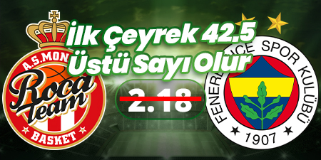 İlk Çeyrek 42.5 Üstü Sayı Olur12 Aralık 21:30Monaco - Fenerbahçe