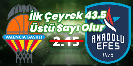İlk Çeyrek 43.5 Üstü Sayı Olur11 Aralık 22:30Valencia Basket - Anadolu Efes